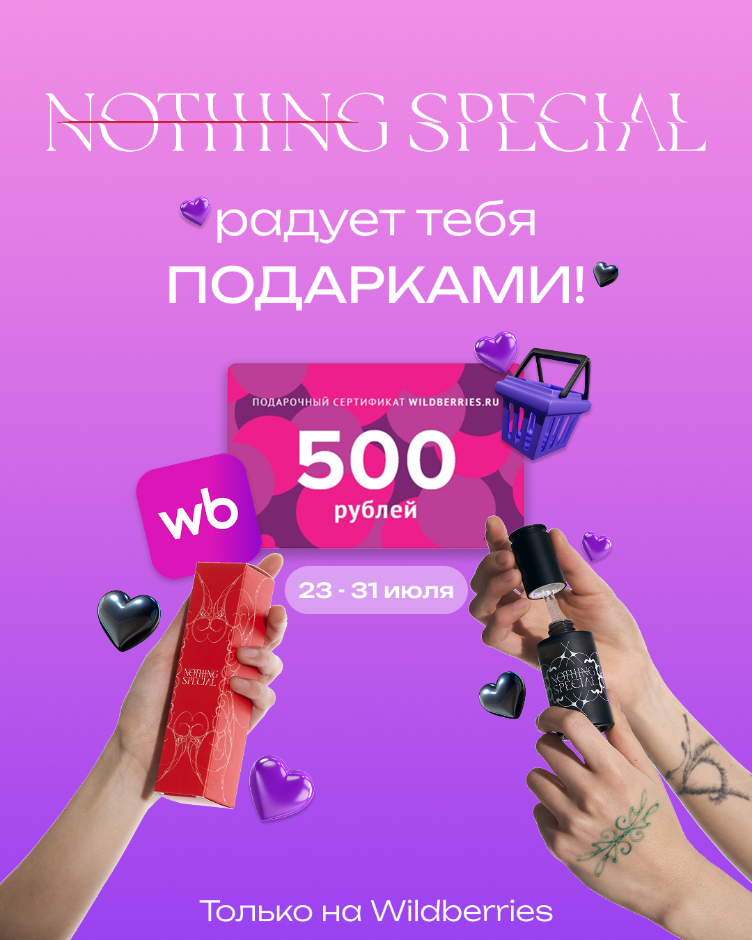 Покупайте нашу продукцию на платформе Wildberries и ловите возможность получить сертификат на 500 рублей на любую покупку в рамках маркетплейса. Заманчиво, не так ли?! Поторопитесь, ведь этот подарок получат только первые 10 покупателей!